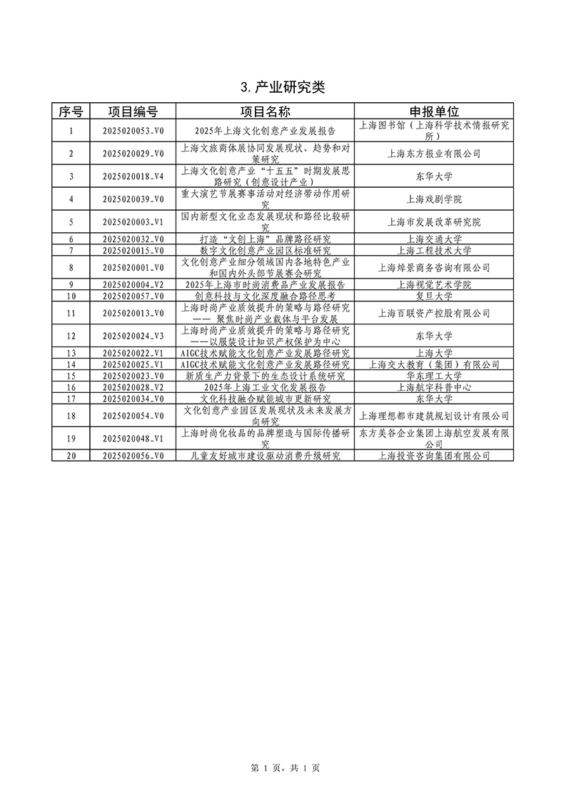 为推进本市文化创意产业发展,根据《上海市促进文化创意产业发展专项资金管理办法》和《2025年度上海市促进文化创意产业发展专项资金项目申报指南》,我办会同相关部门开展了2025年上海市促进文化创意产业发展专项资金项目评审工作。现将2025年拟支持项目(第一批)予以公示,公示时间为2025年9月19日至9月25日。公示期间如有异议,请提供相关材料并签署实名根据申报类目报送至市文创办或市文旅局。