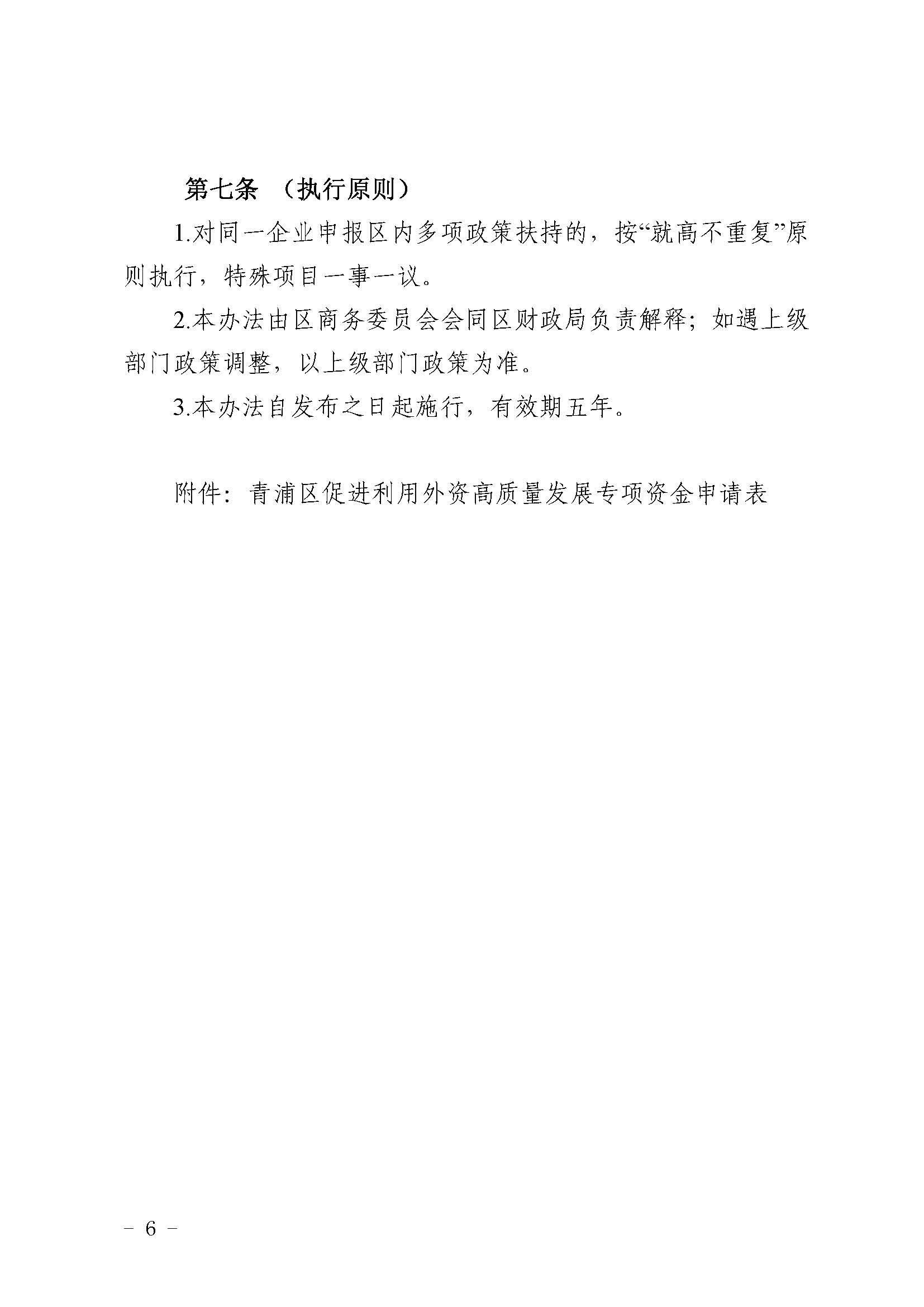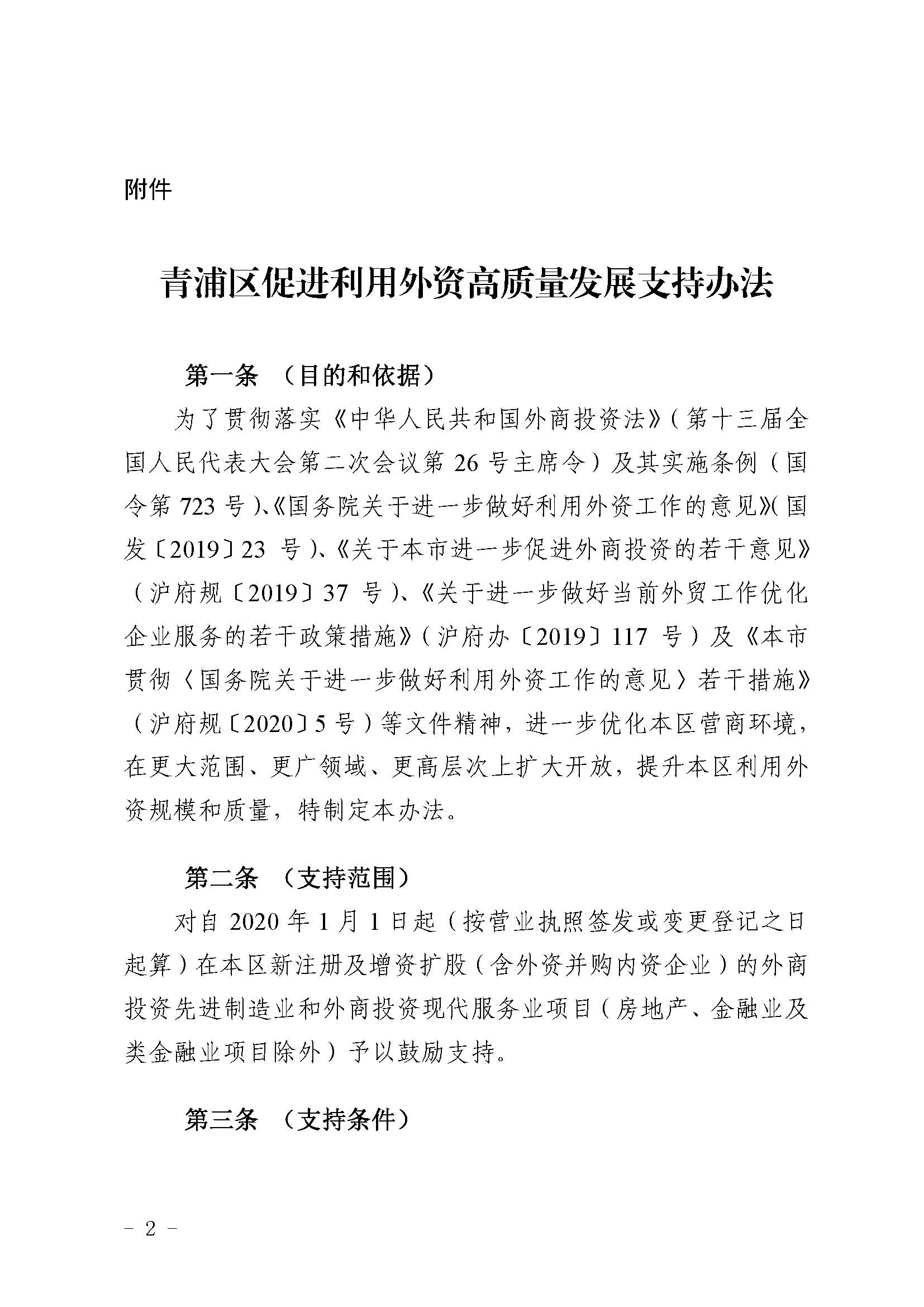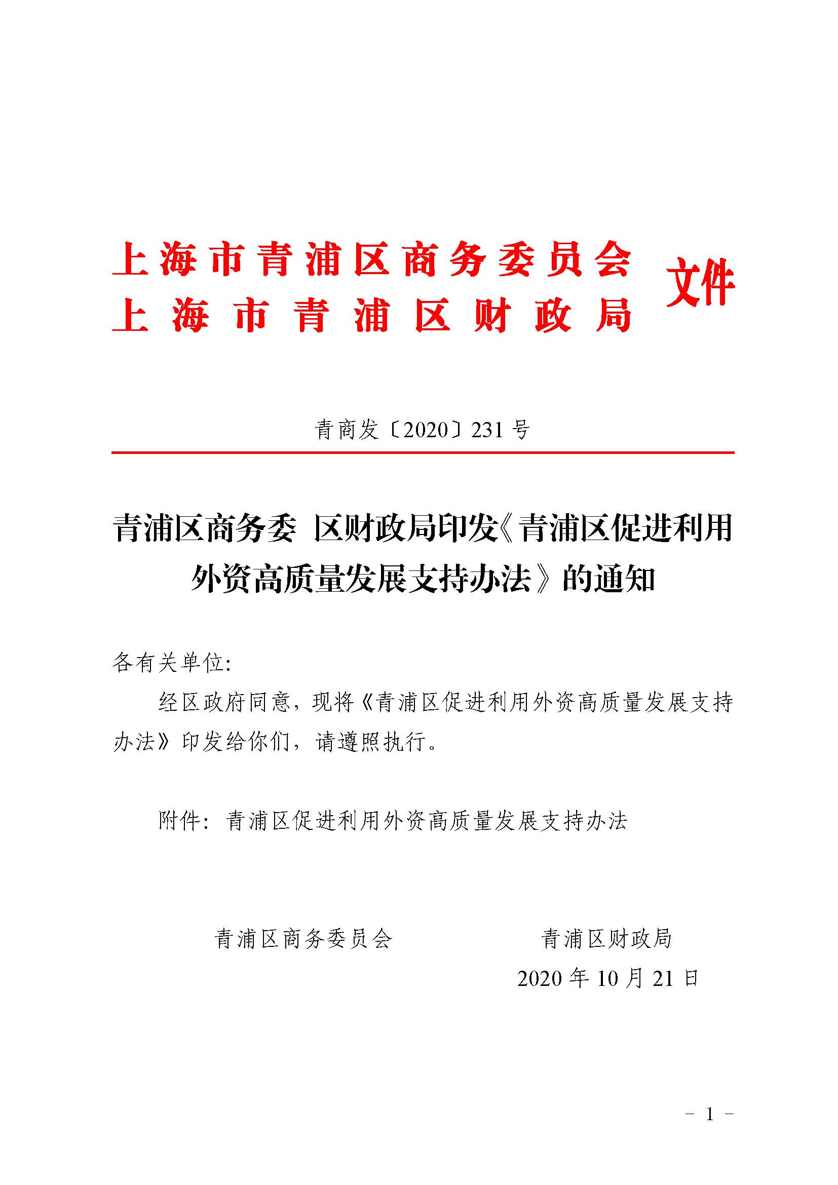 《青浦区促进利用外资高质量发展支持办法》的通知