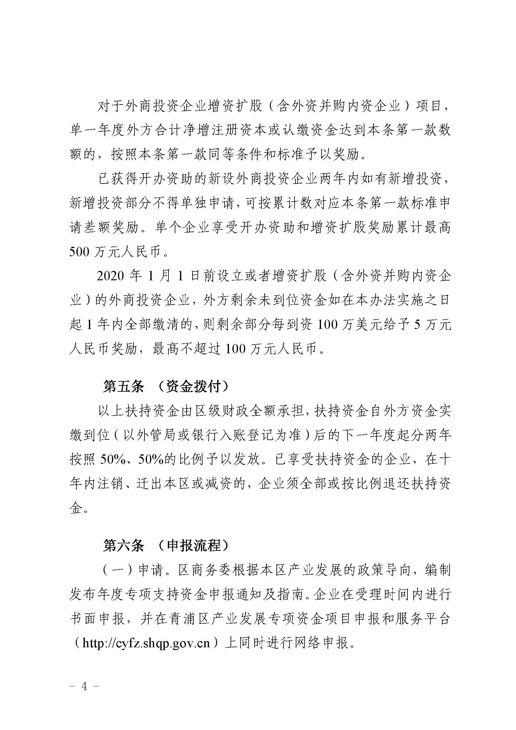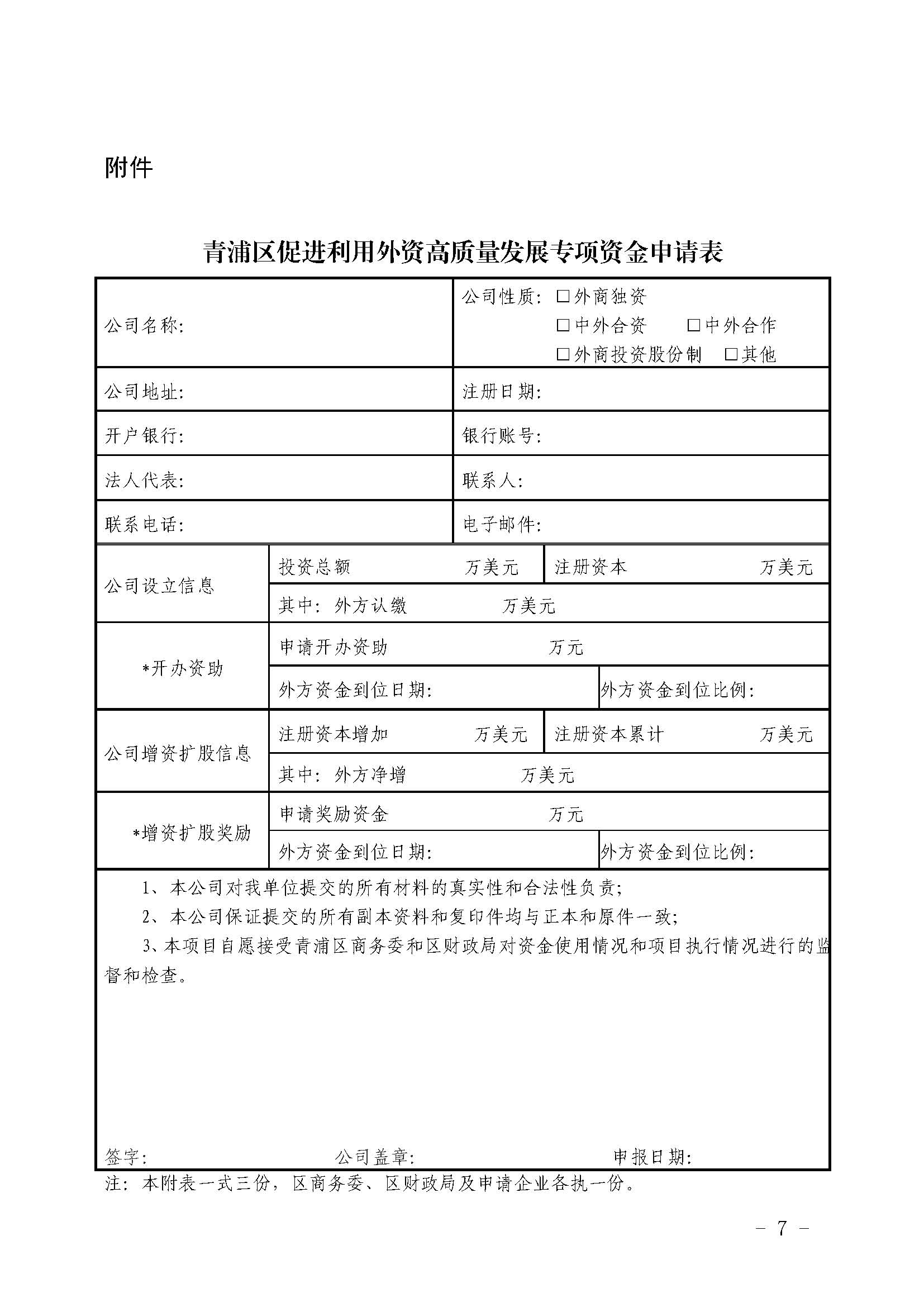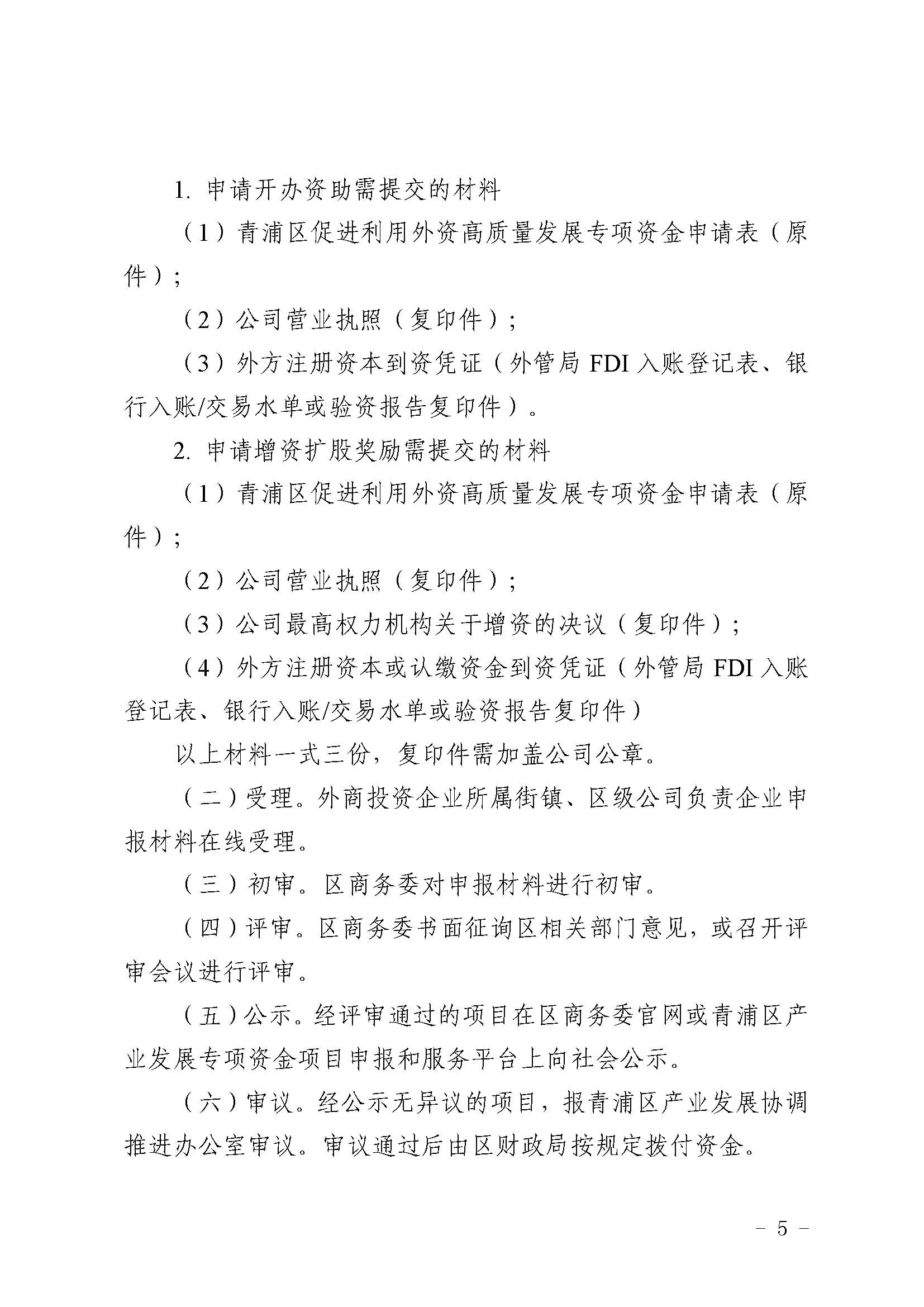 《青浦区促进利用外资高质量发展支持办法》的通知