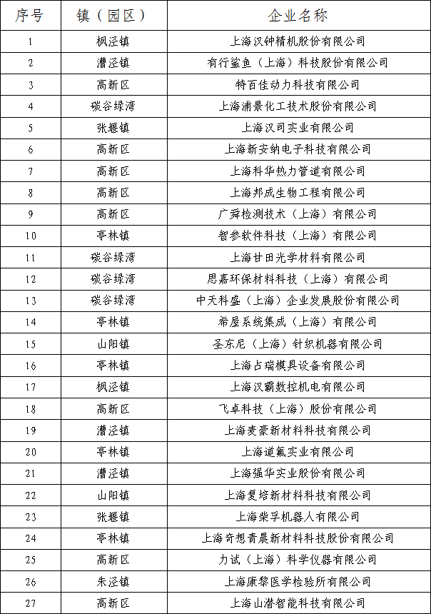 附件:2022年金山区瞪羚企业拟认定名单公示