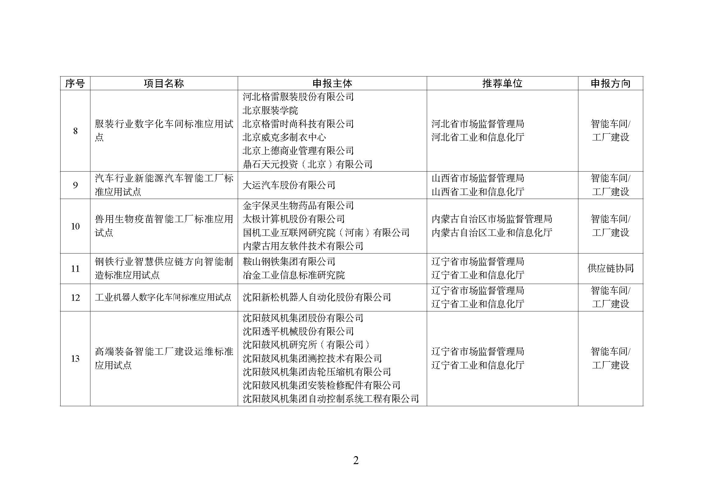 根据《关于开展2022年度智能制造标准应用试点工作的通知》(市监标技发〔2022〕34号),现将拟入选的2022年度智能制造标准应用试点项目名单进行公示,请监督提出意见。如有异议,请在公示期内将书面意见反馈至市场监管总局标准技术司、工业和信息化部装备工业一司。