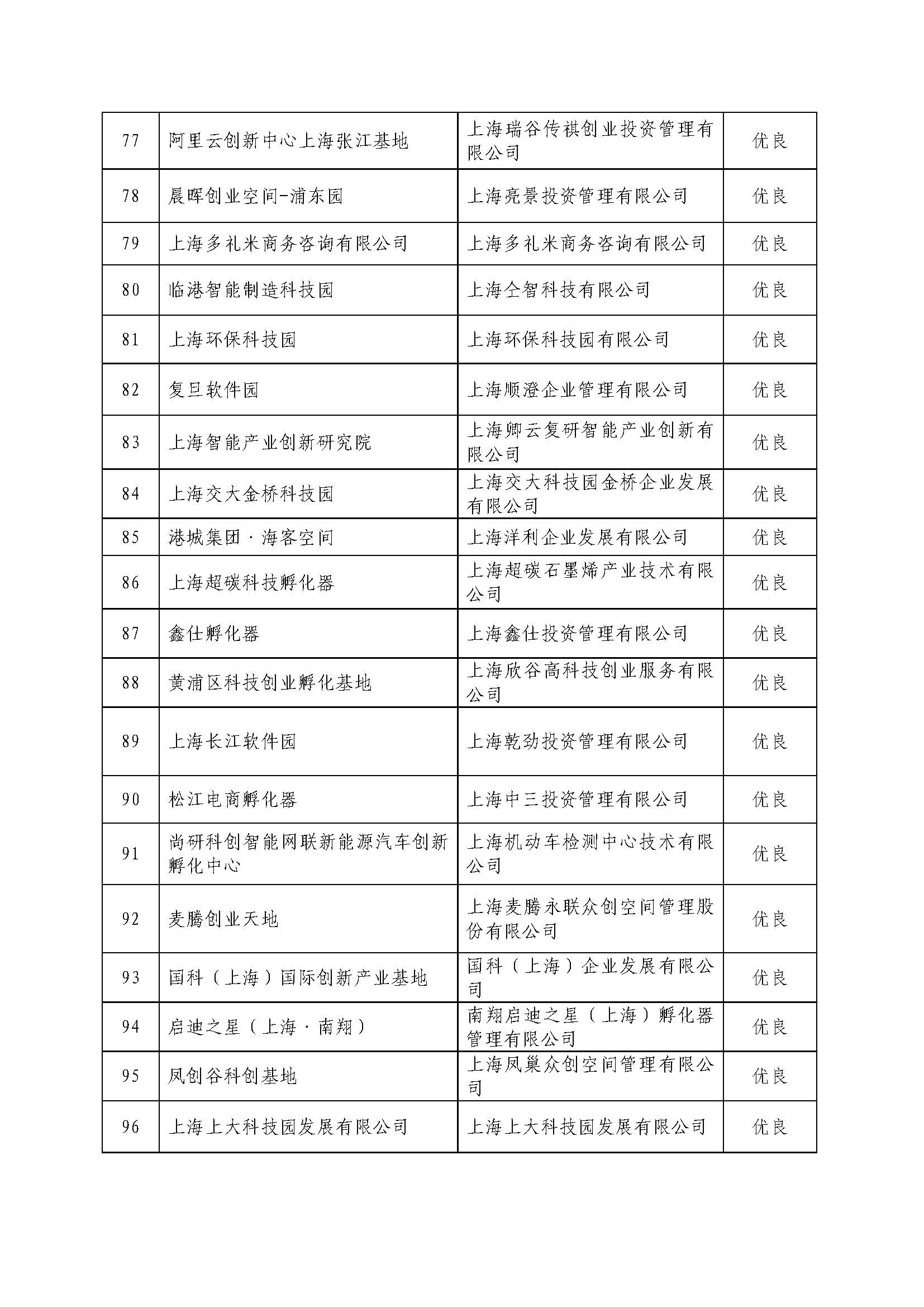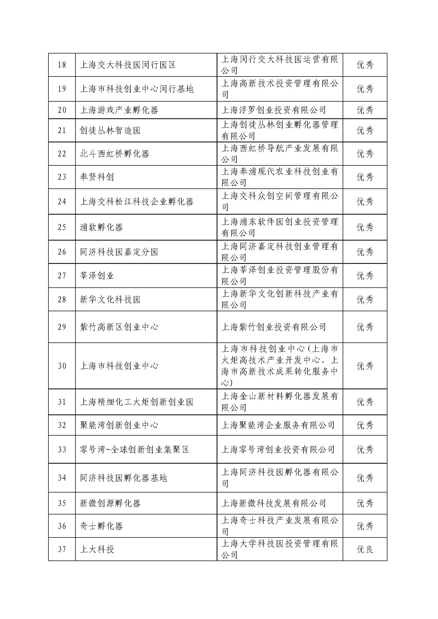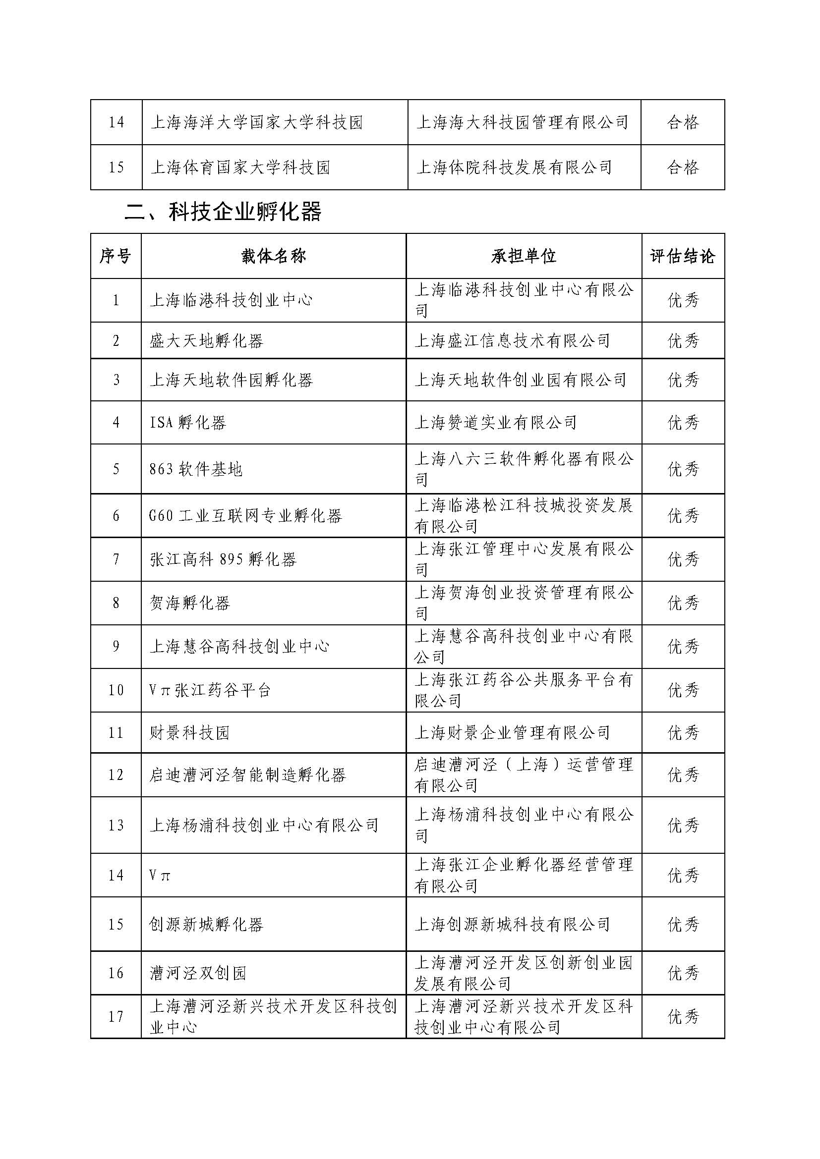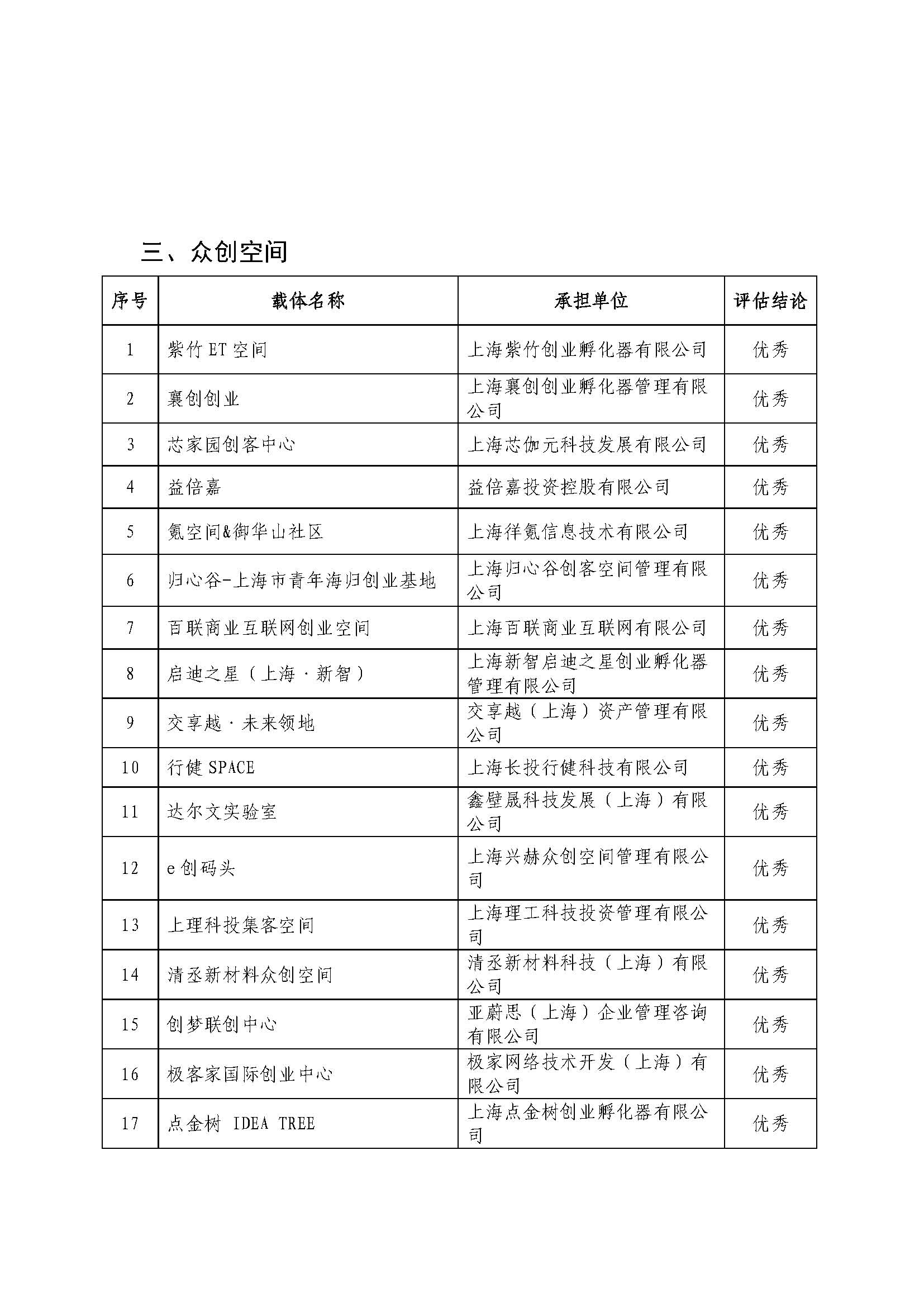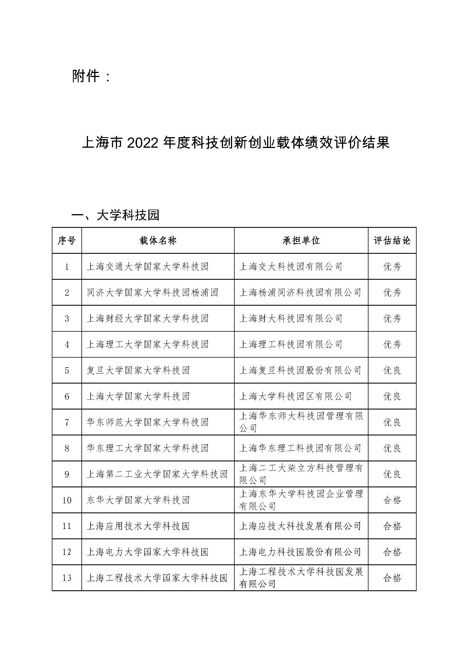 上海市2022年度科技创新创业载体绩效评价结果公示的通知