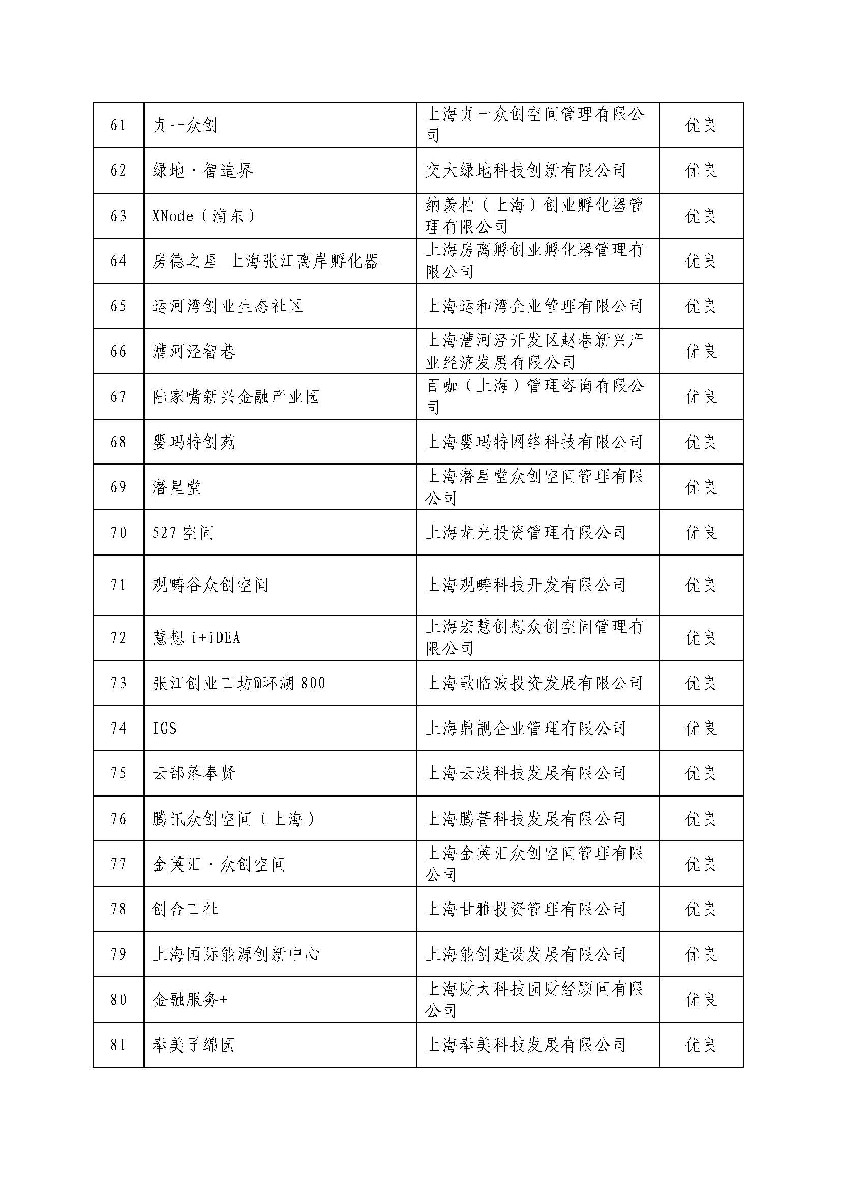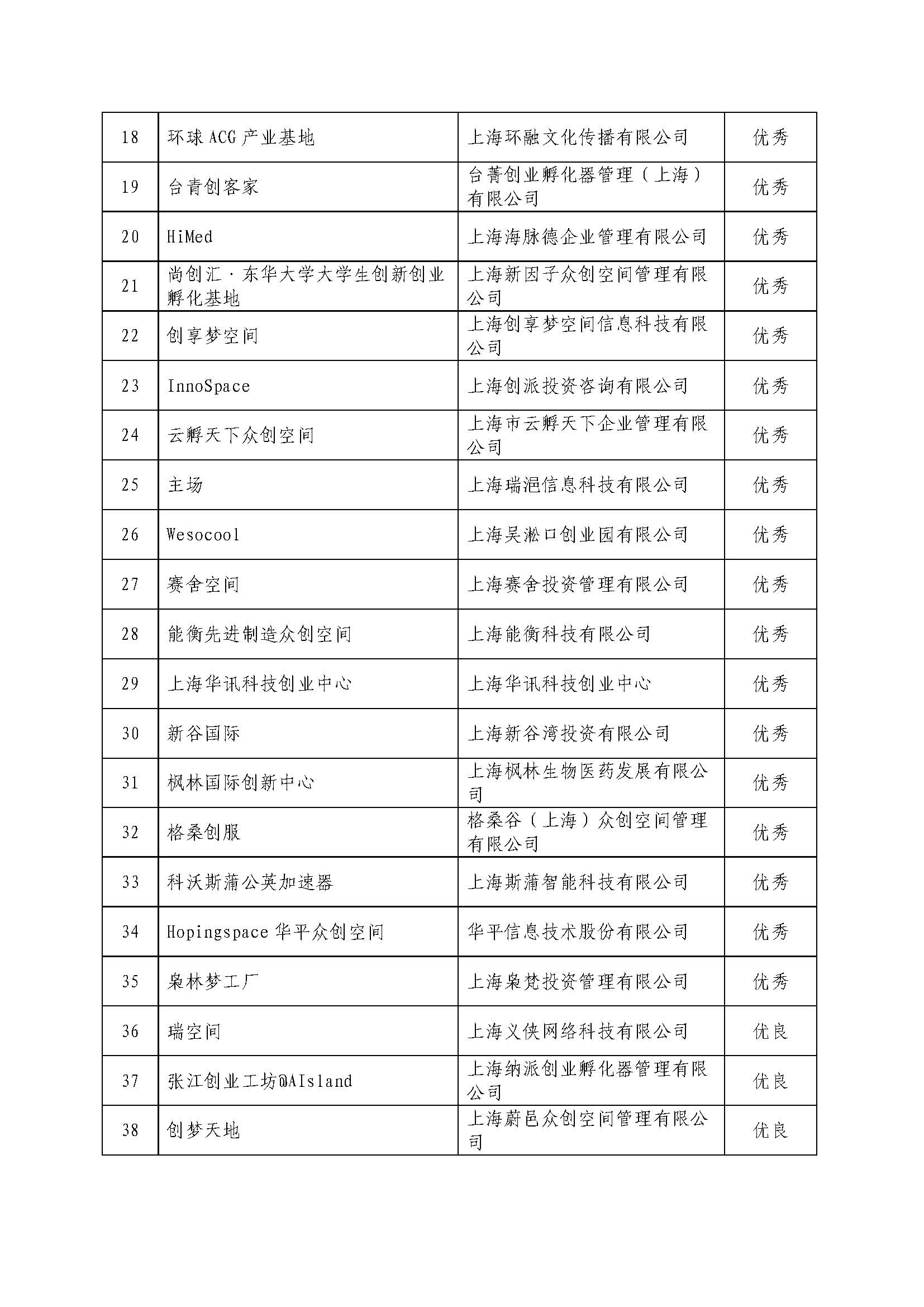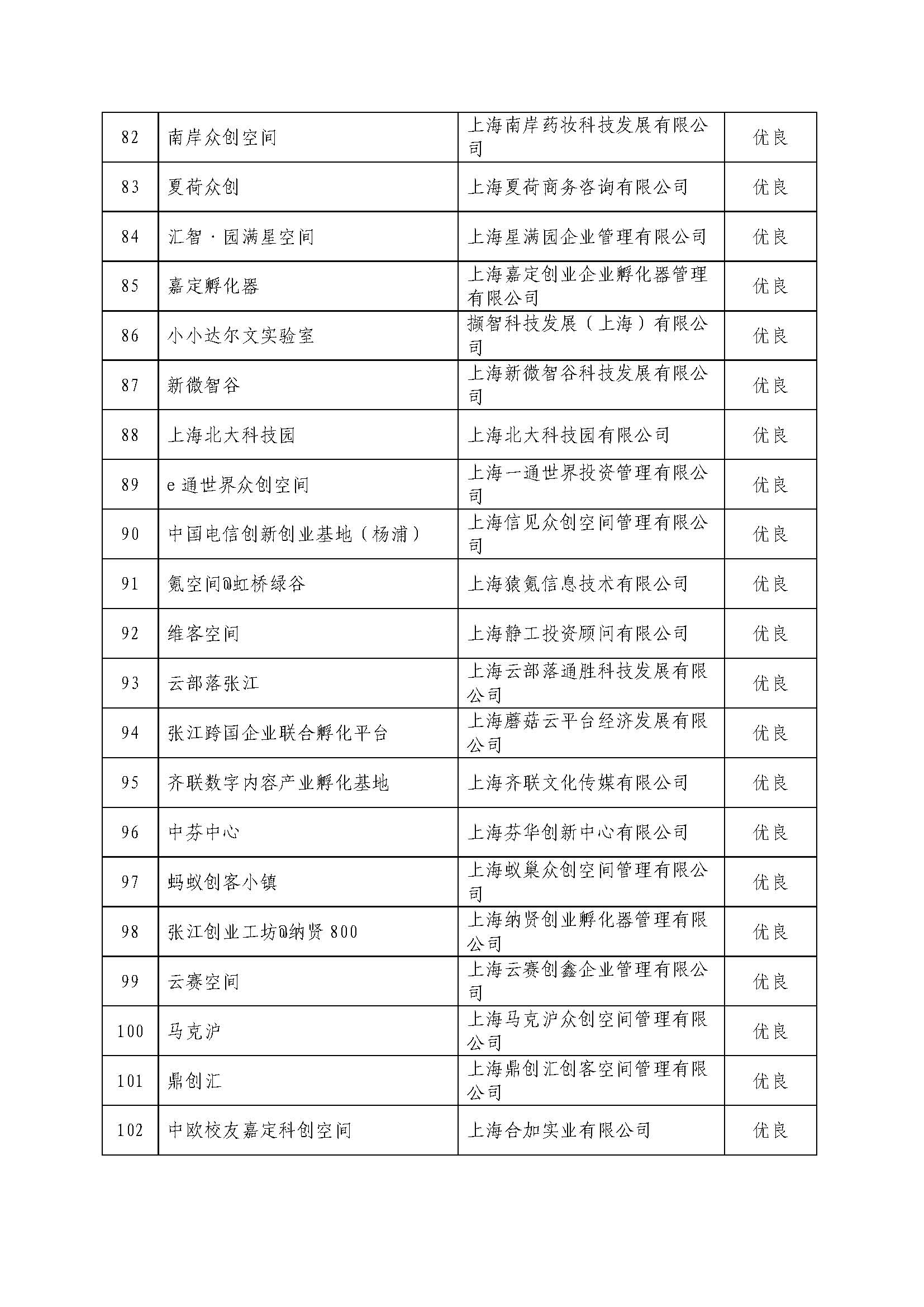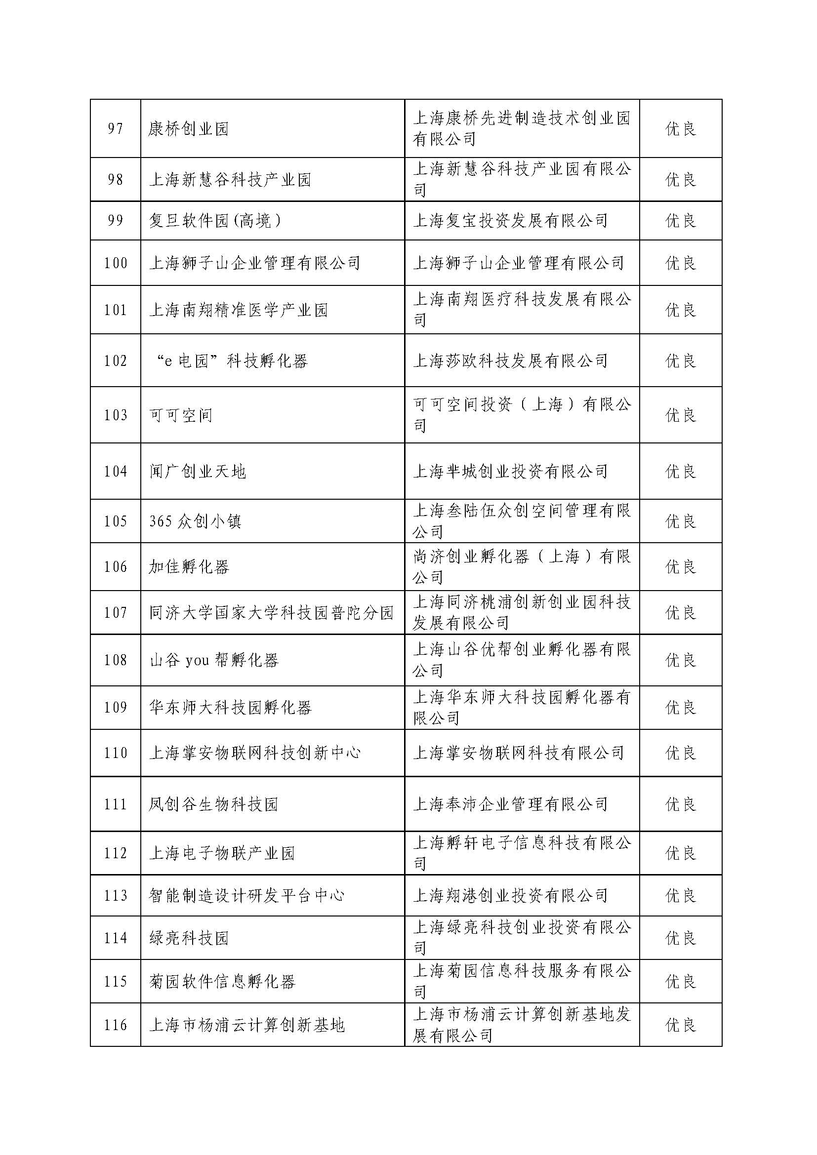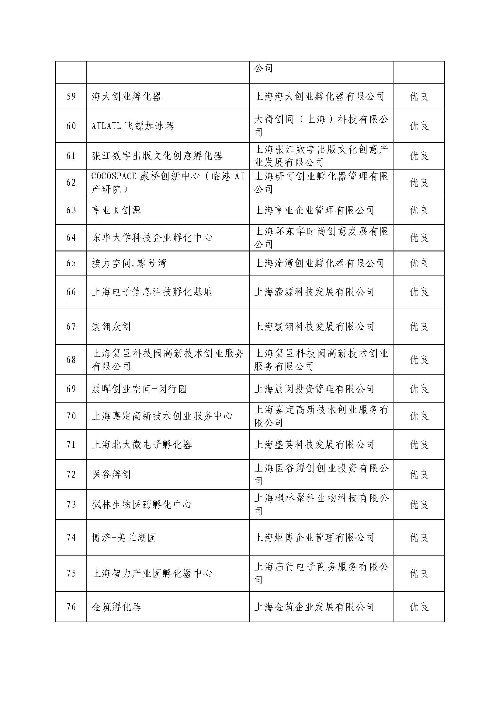 上海市2022年度科技创新创业载体绩效评价结果公示的通知
