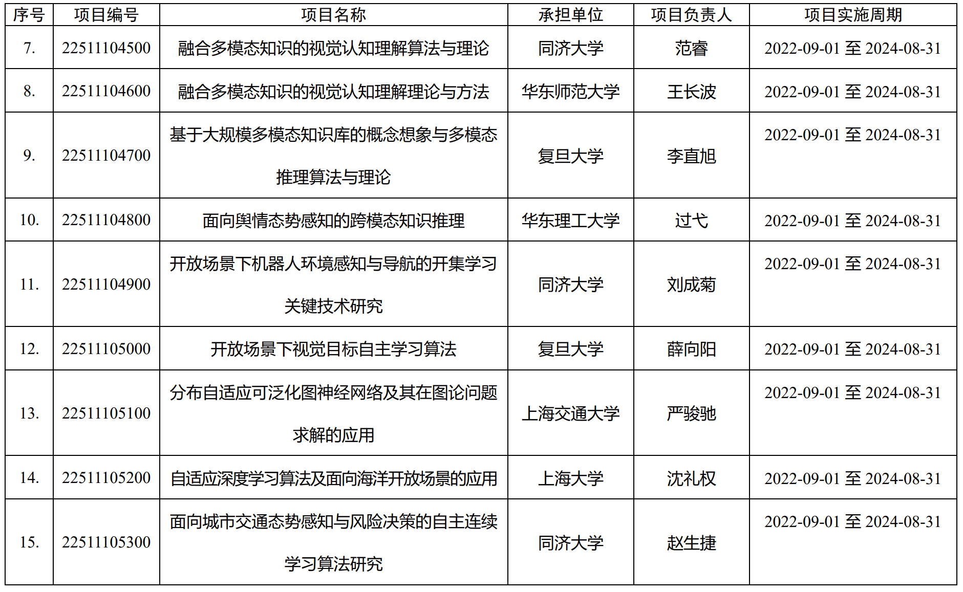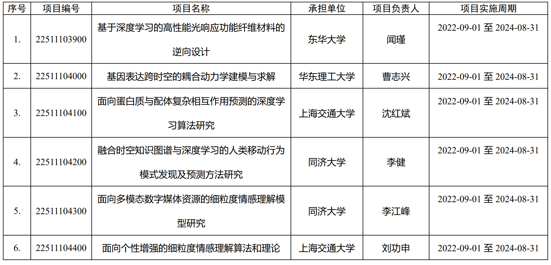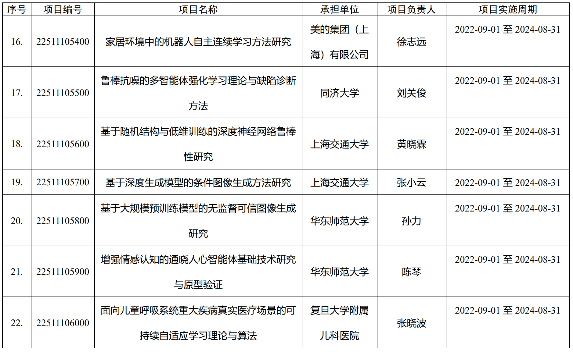 上海市2022年度“科技创新行动计划”人工智能科技支撑专项项目立项的通知