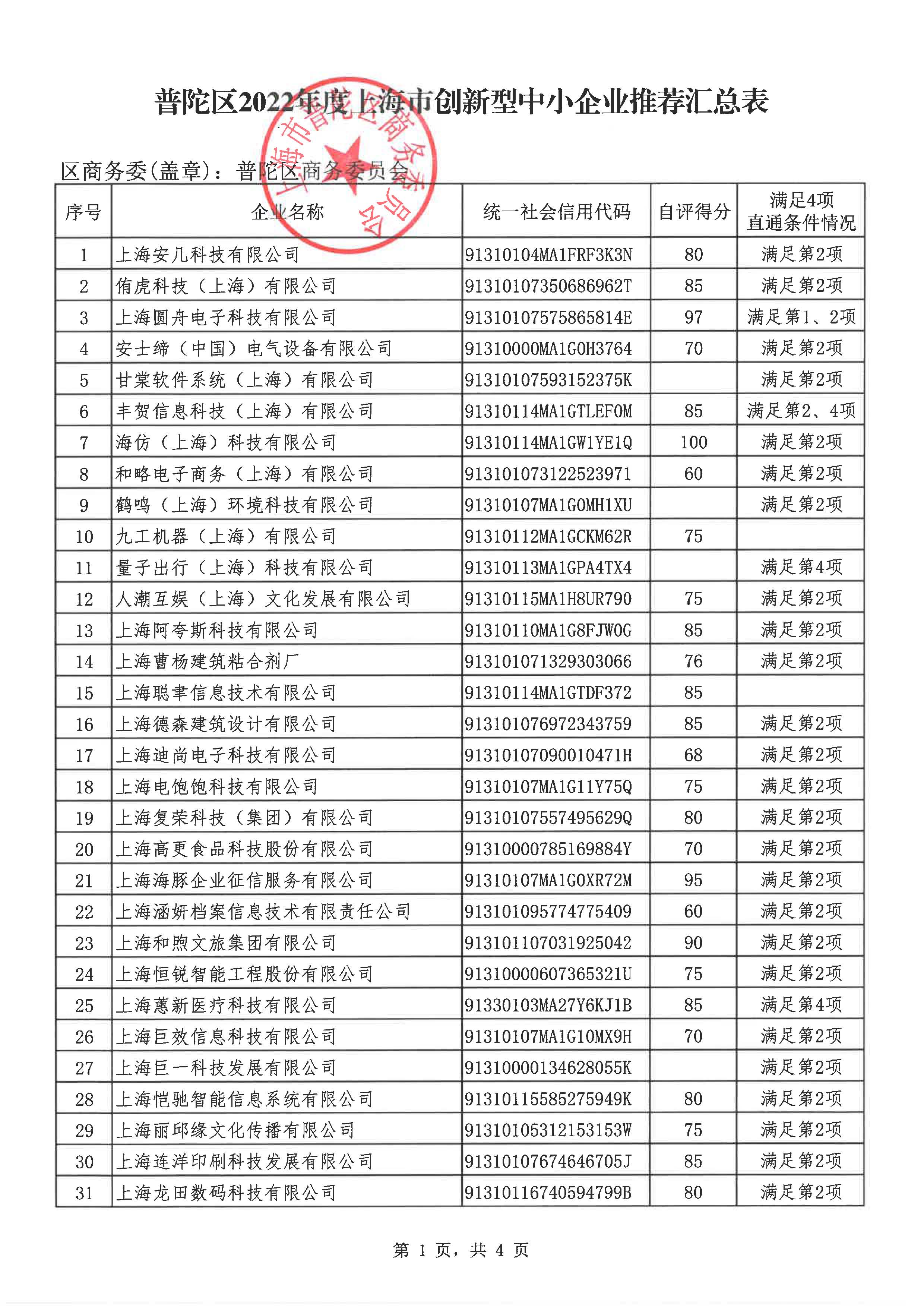 附件:普陀区2022年度上海市创新型中小企业推荐汇总表
