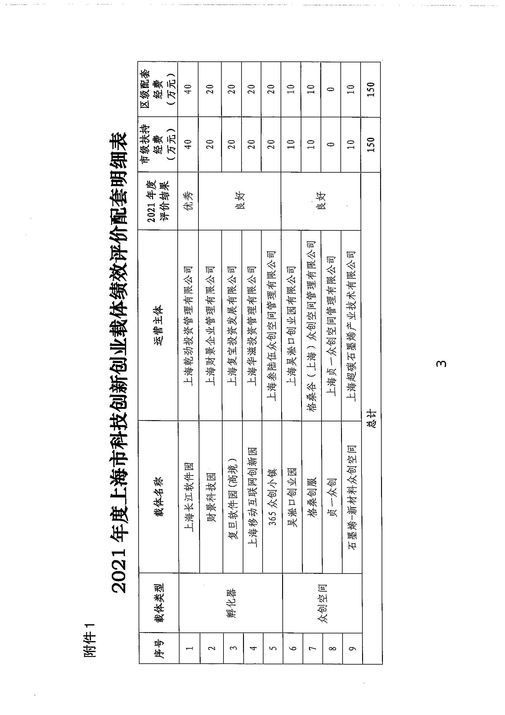 1.2021年度上海市科技创新创业载体绩效评价配套明细表