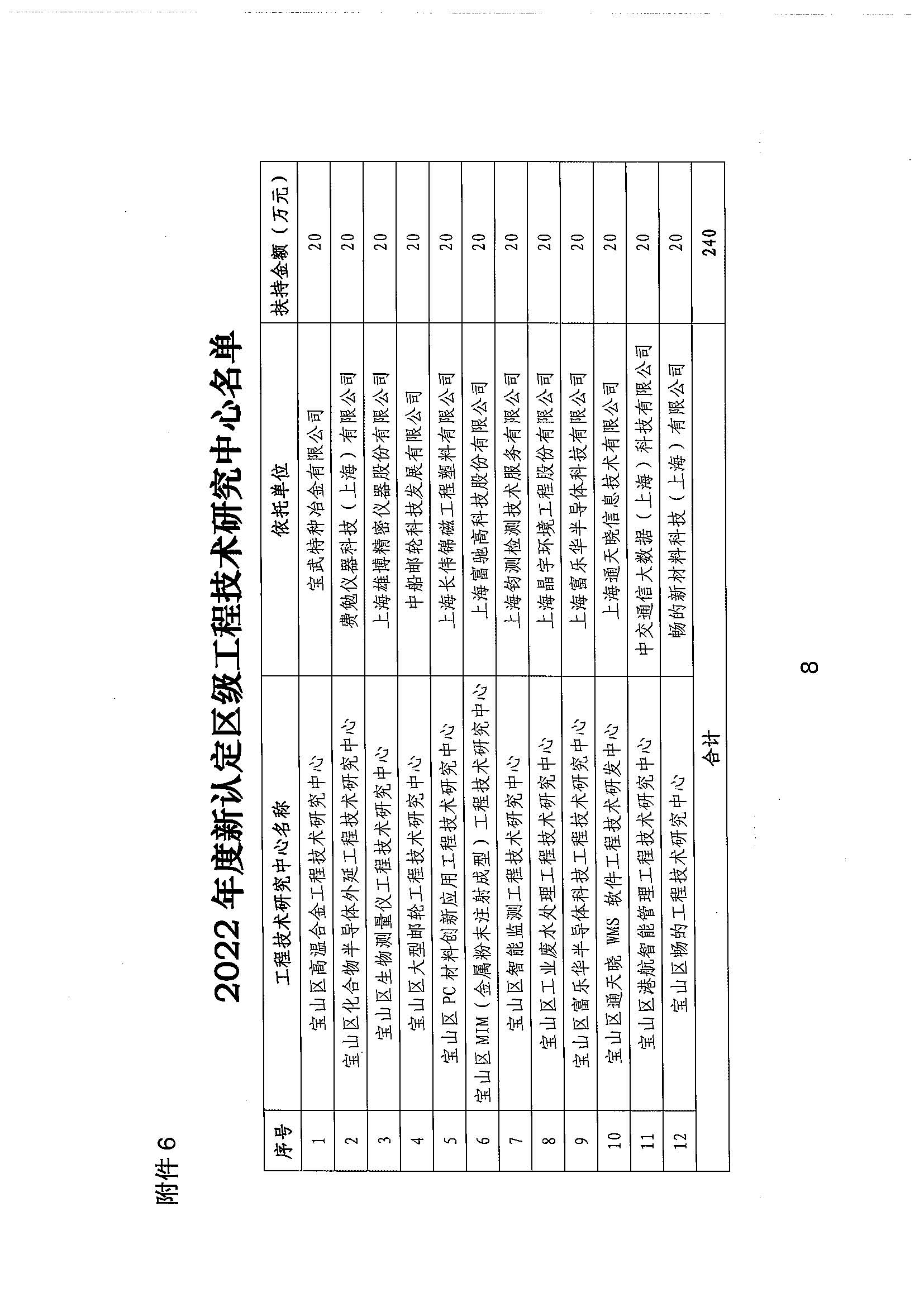 关于下达2022年度宝山区科技创新专项资金项目的通知