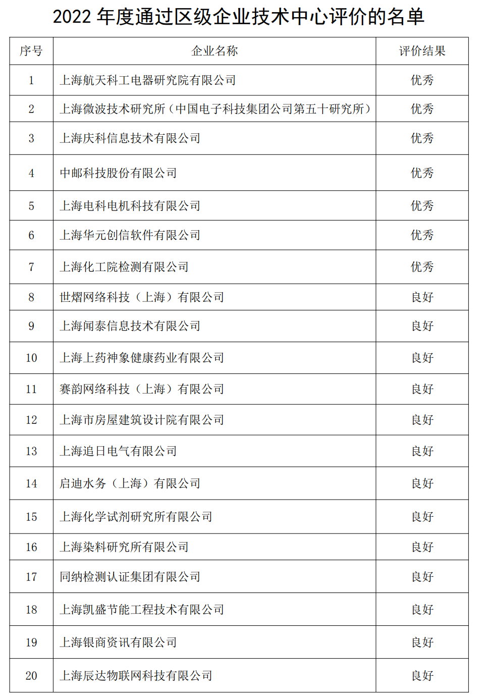 普陀区区级企业技术中心2022年度评价结果以及区级企业技术中心更名的通知
