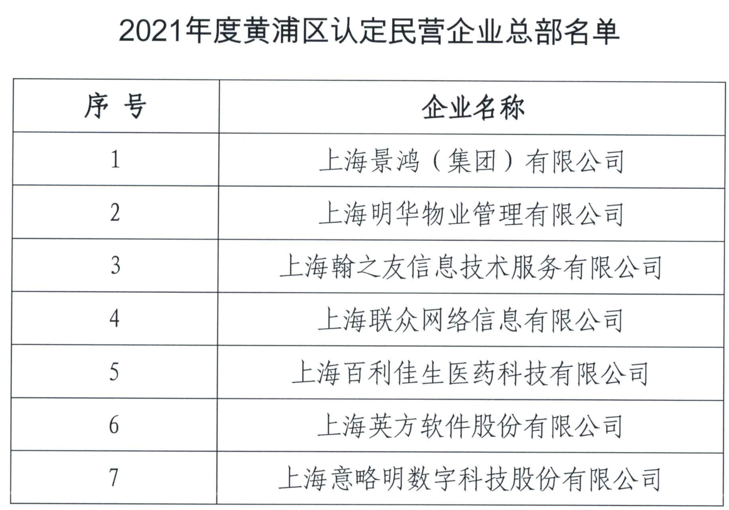 关于发布2021-2022年度黄浦区区级民营企业总部名单的通知
