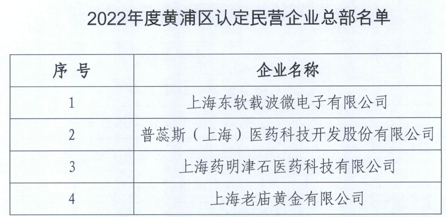 根据《黄浦区鼓励设立民营企业总部的实施意见》(黄商务委〔2019〕54号),经审定,现认定上海东软载波微电子有限公司等11家企业为黄浦区区级民营企业总部。