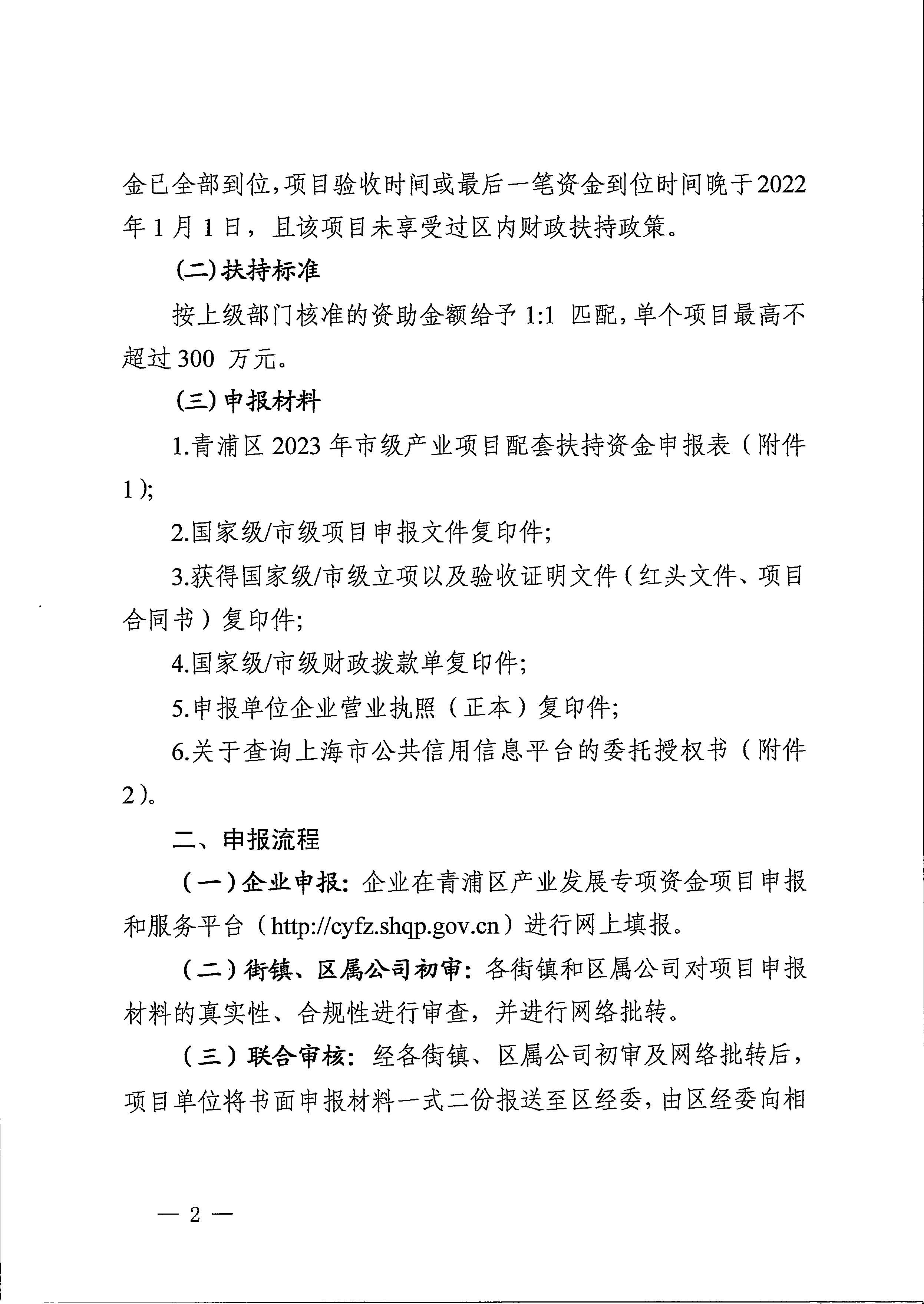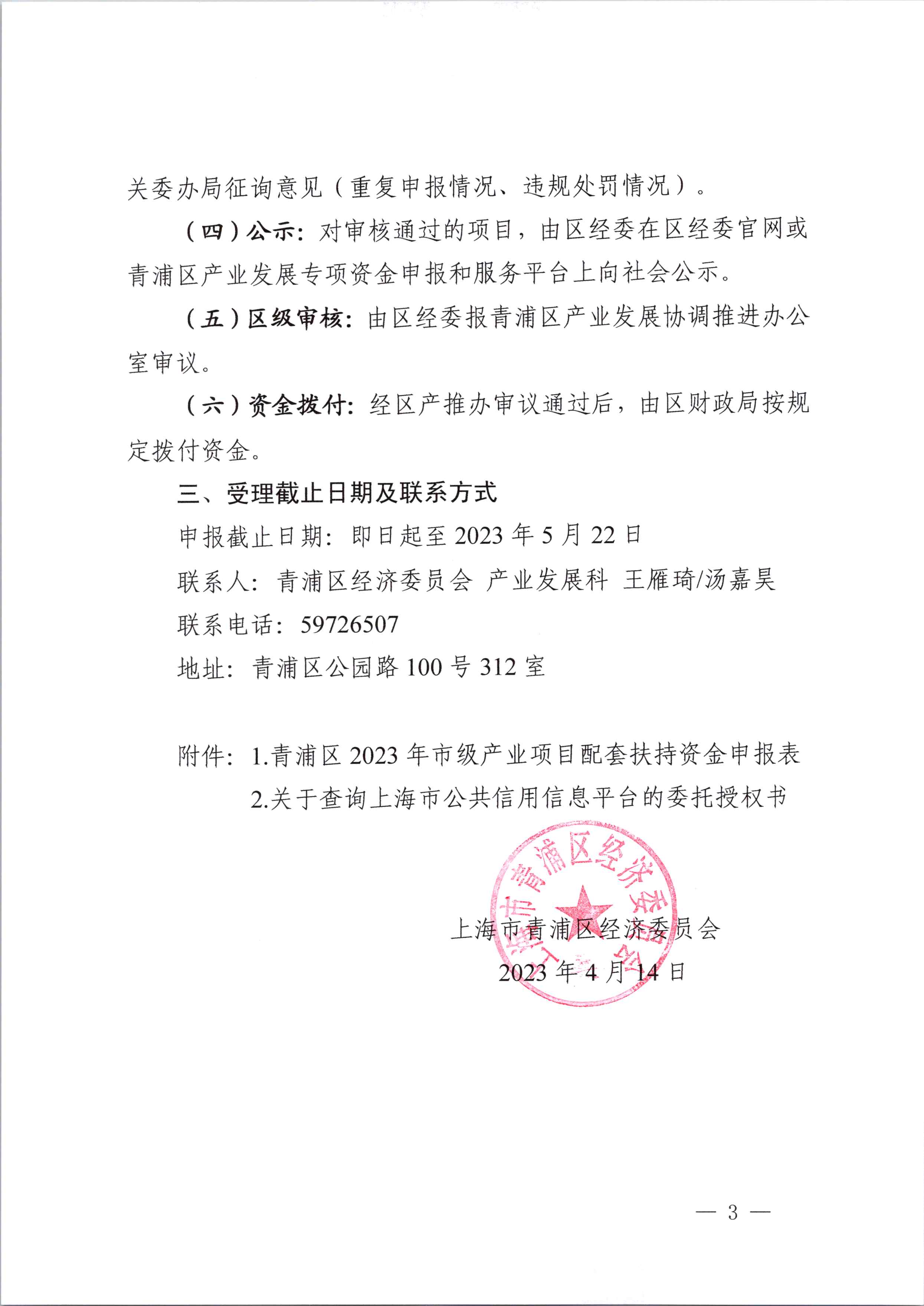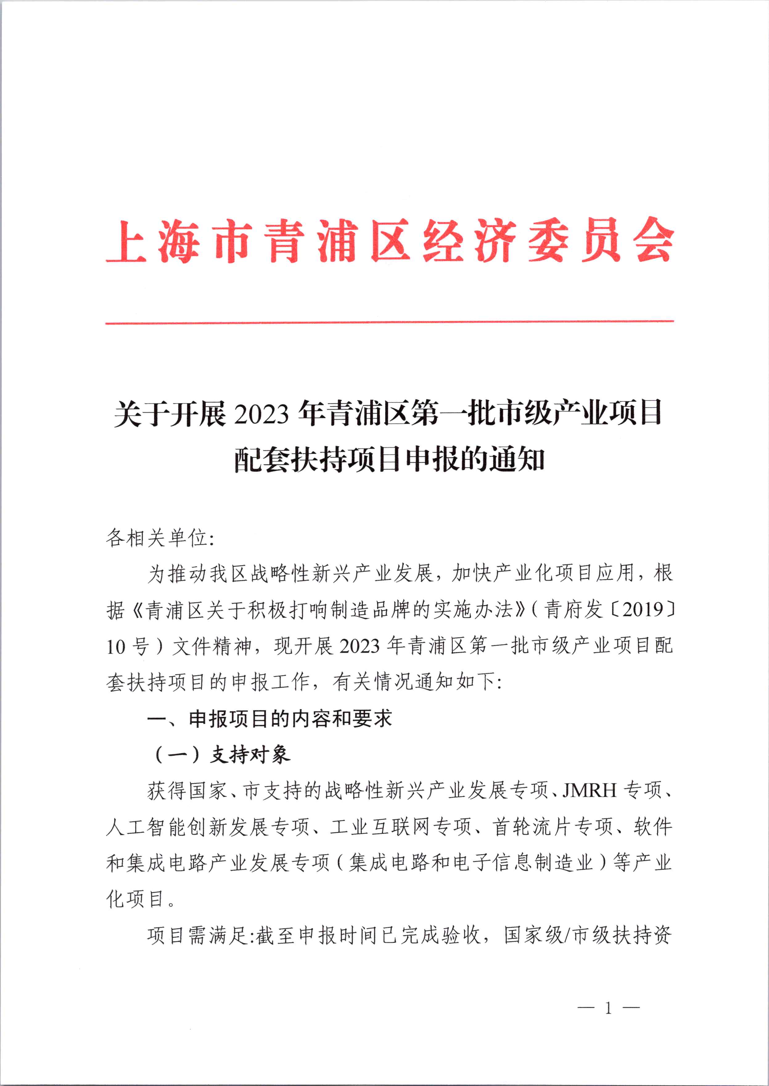 关于开展2023年青浦区第一批市级产业项目配套扶持项目申报的通知