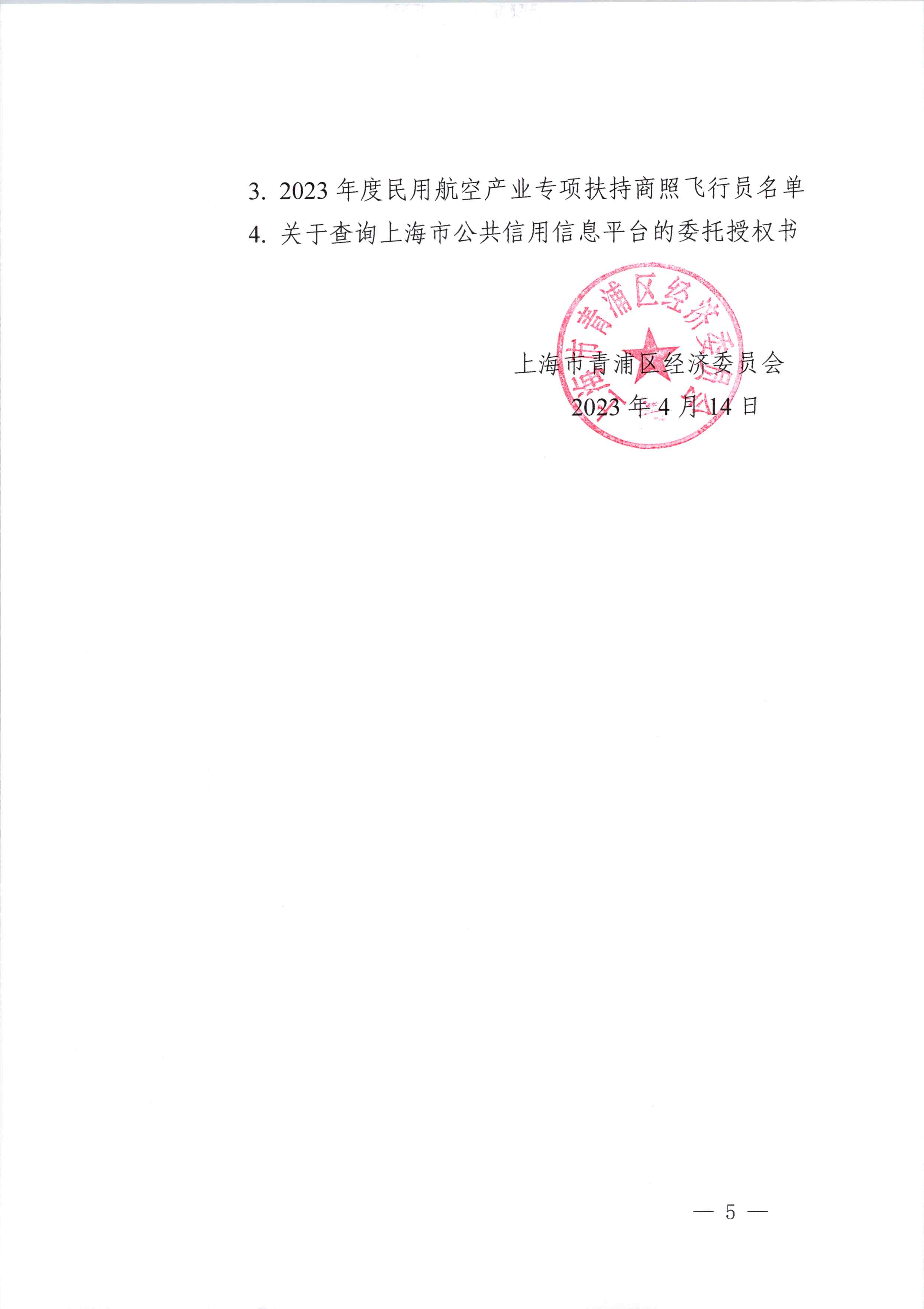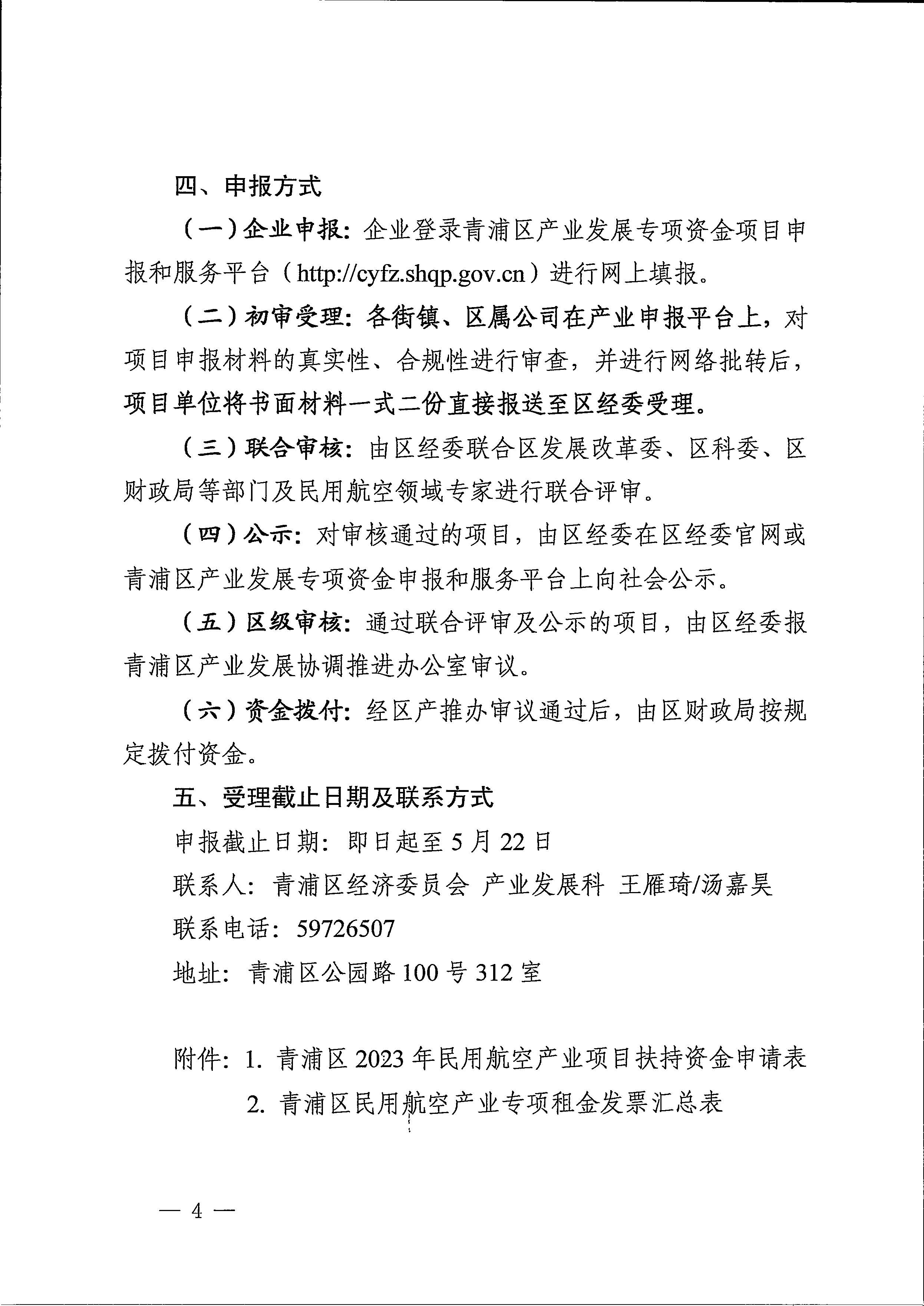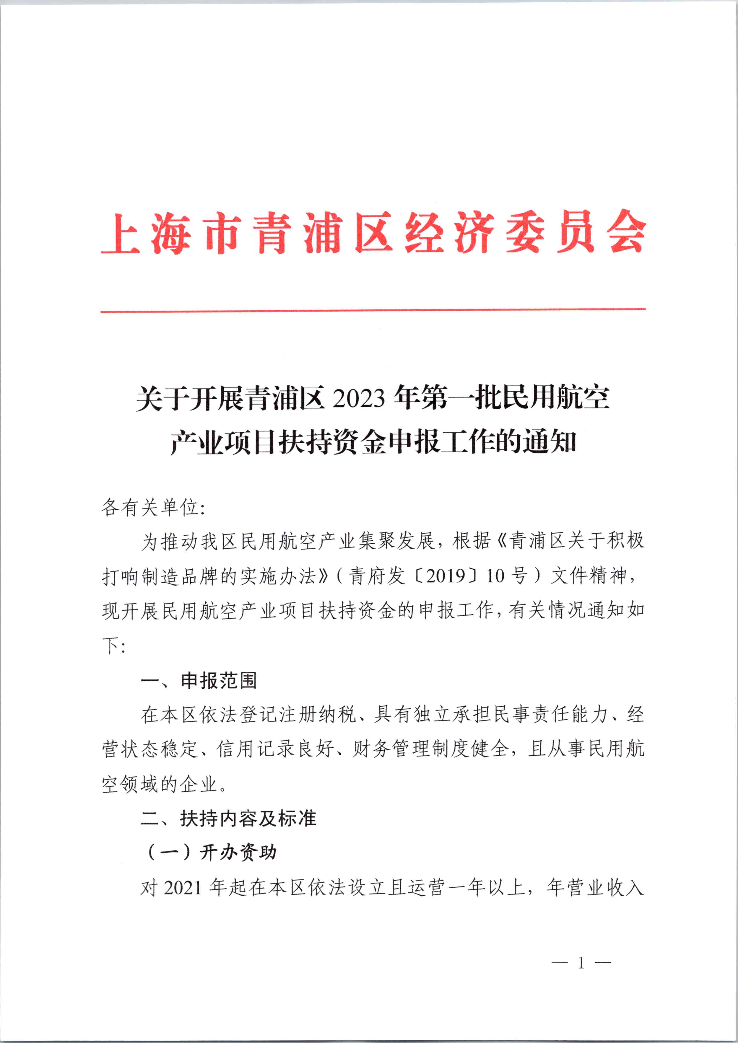 关于开展青浦区2023年第一批民用航空产业项目扶持资金申报工作的通知