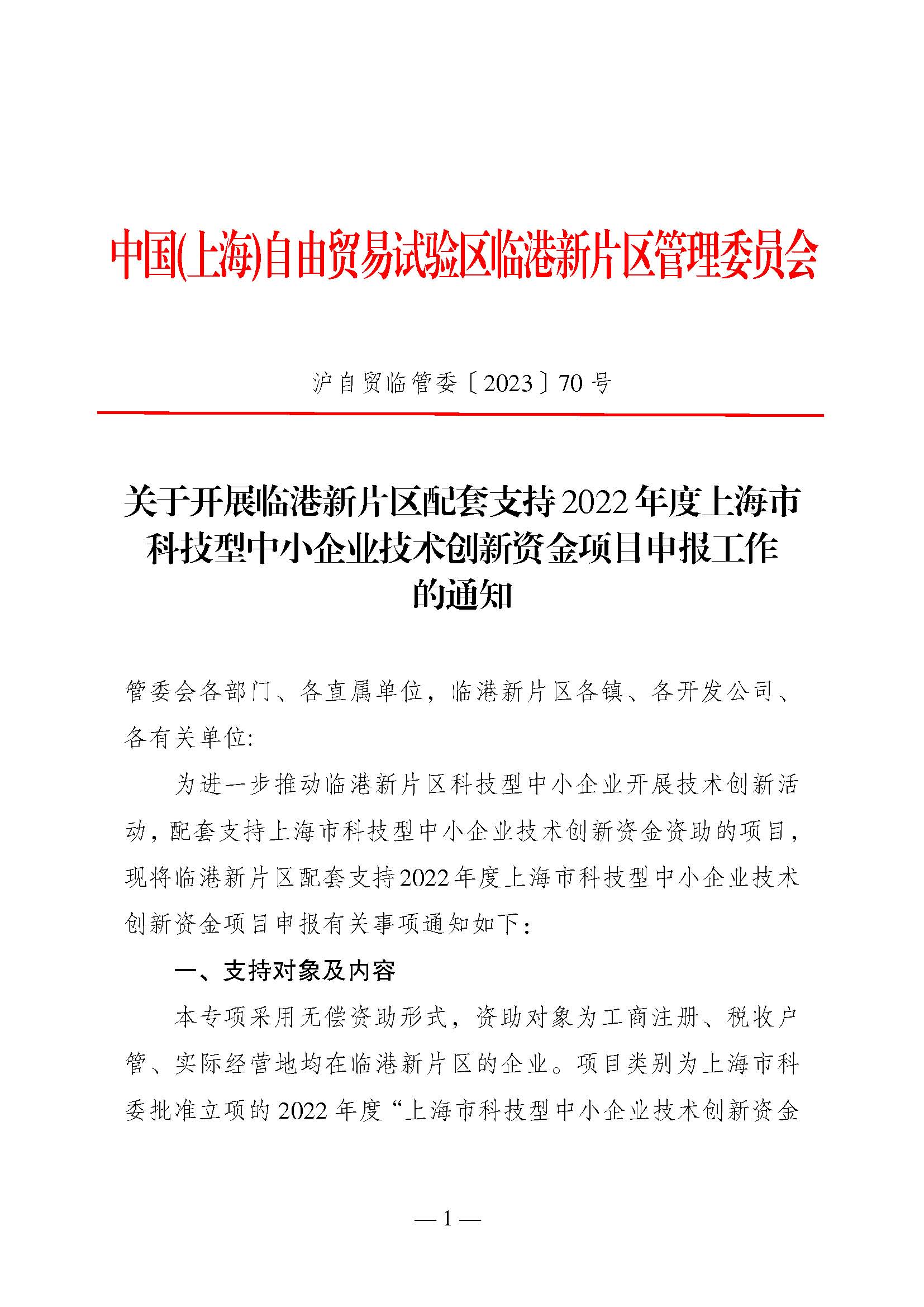临港新片区配套支持2022年度上海市科技型中小企业技术创新资金项目申报工作的通知