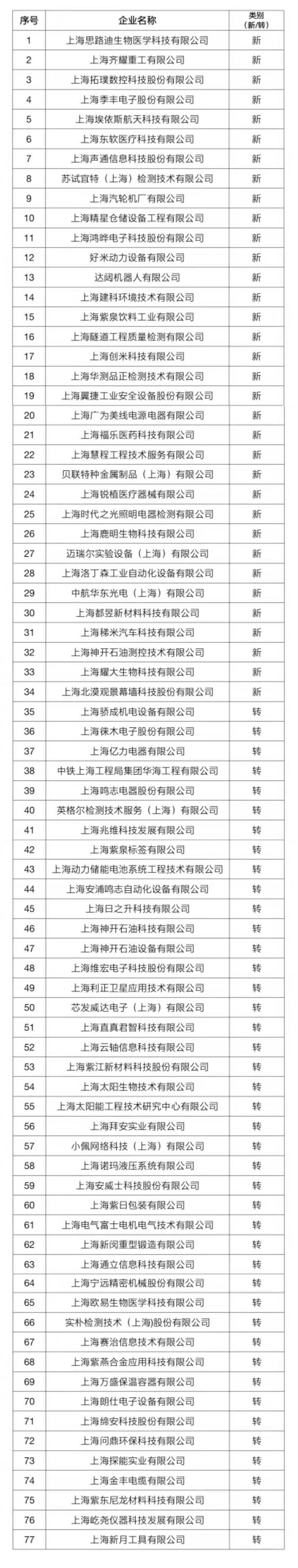 闵行区2021年度拟认定企业技术中心名单